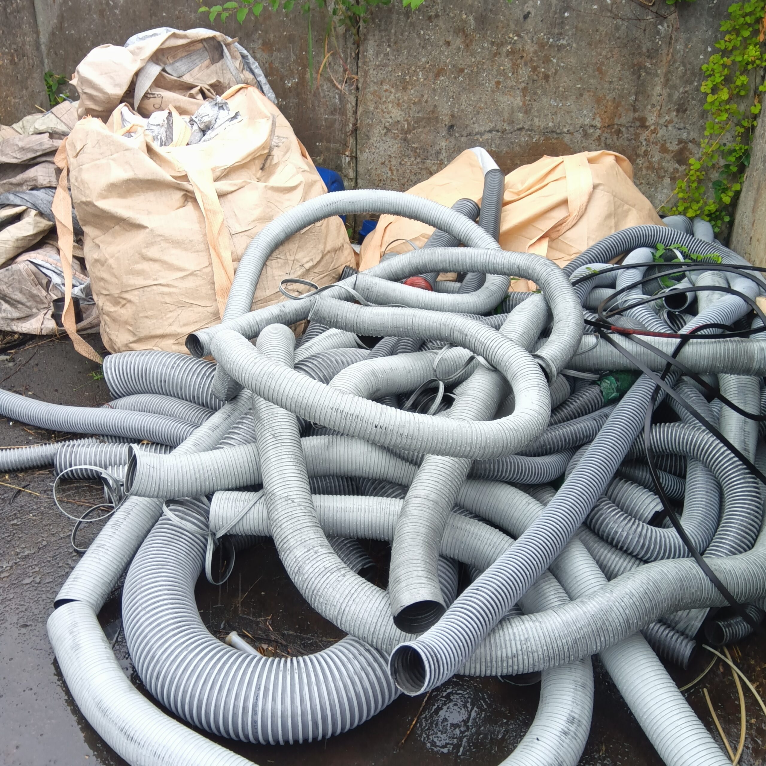 3.ダクトホース:空調や集塵用。薄手ですが、螺旋状のピアノ線が入っており、焼却炉に残渣として残ります。
