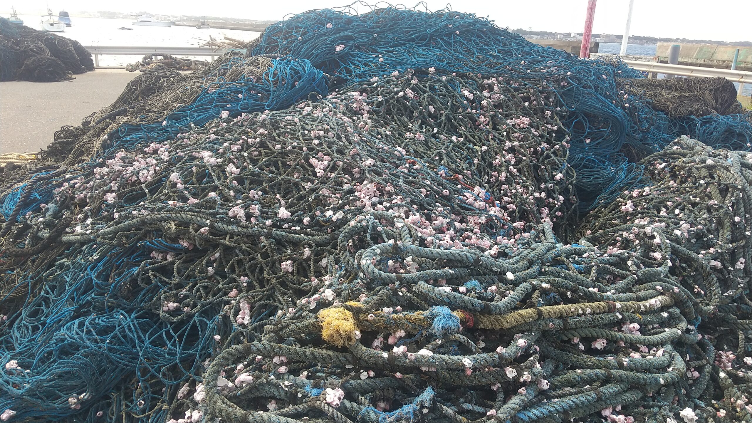 3.漁網:最も処理が難しい品目です。網自体は廃プラですが、おもりとして鉛やチェーンが編み込まれている場合、「金属との混合物」となり、そのままでは焼却できません。鉛の除去には多大な労力を要します。