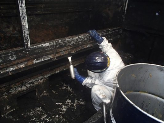 ③産廃処理のプロによる安心の一括請負清掃作業で発生した塗料カス(汚泥)や廃液の収集運搬から処分まで、NDKグループが一貫して対応。マニフェスト管理を含め、コンプライアンスを順守した適正処理をお約束します。